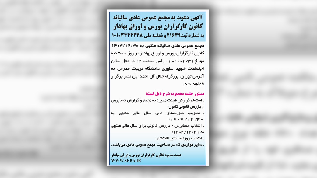 مجمع عمومی عادی به طور فوق العاده کانون کارگزاران بورس و اوراق بهادار