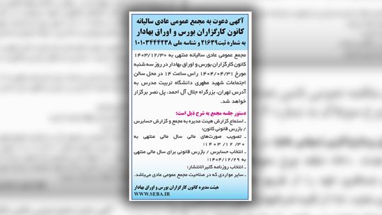 فراخوان دعوت به مجمع عمومی عادی سالیانه کانون کارگزاران بورس و اوراق بهادار منتشر شد