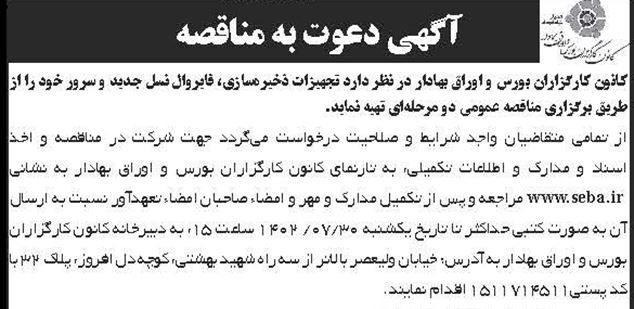آگهی مناقصه کانون کارگزاران برای تهیه تجهیزات ذخیرهسازی، فایروال نسل جدید و سرور منتشر شد